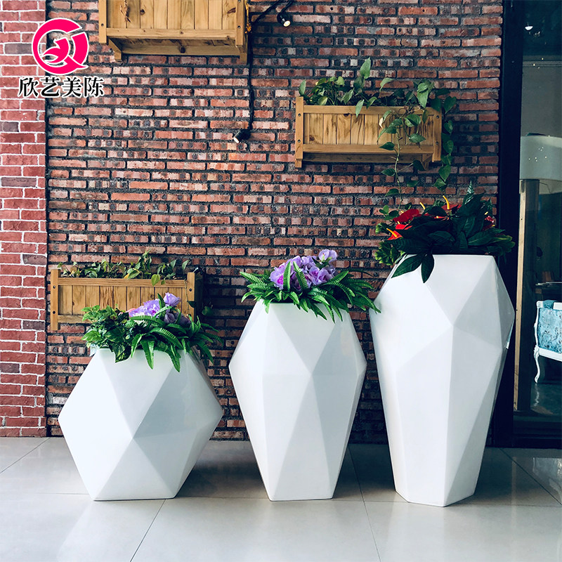 Glass Fiber Combined Flower Pot Landscape Artwork Ground Floor Large Vase Mall Hotel Hallway Front Door Decorated Swing