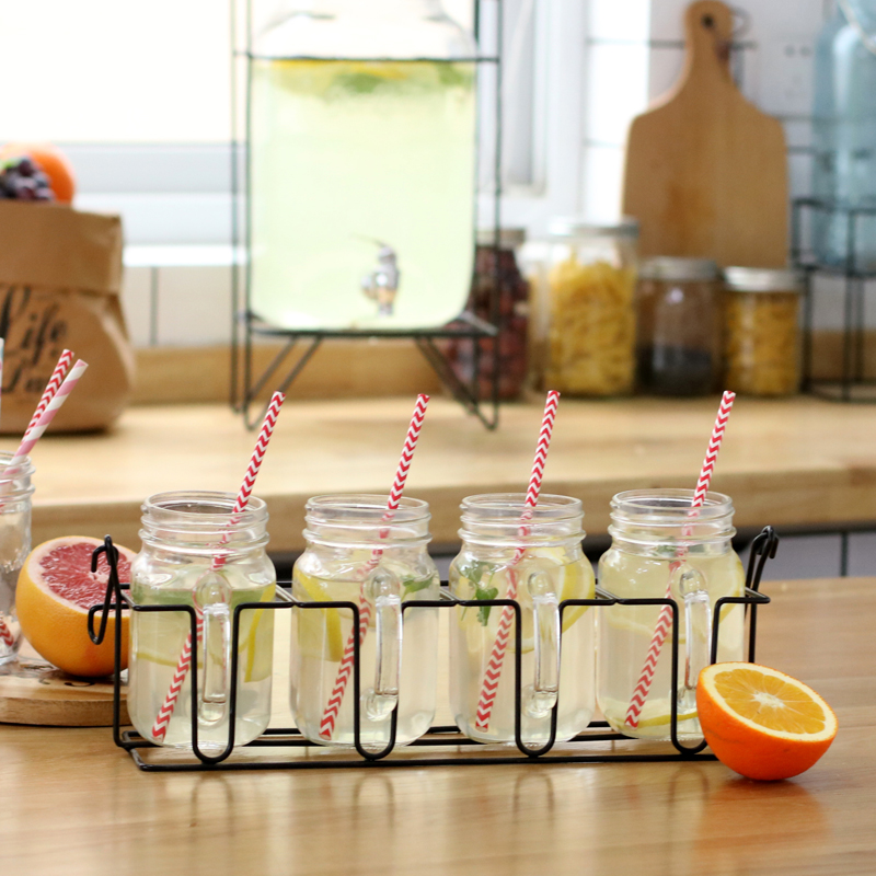 Vintage cold water bottle juice can with faucet storage wrought iron handle frame wooden handle frame Mason jar three packs