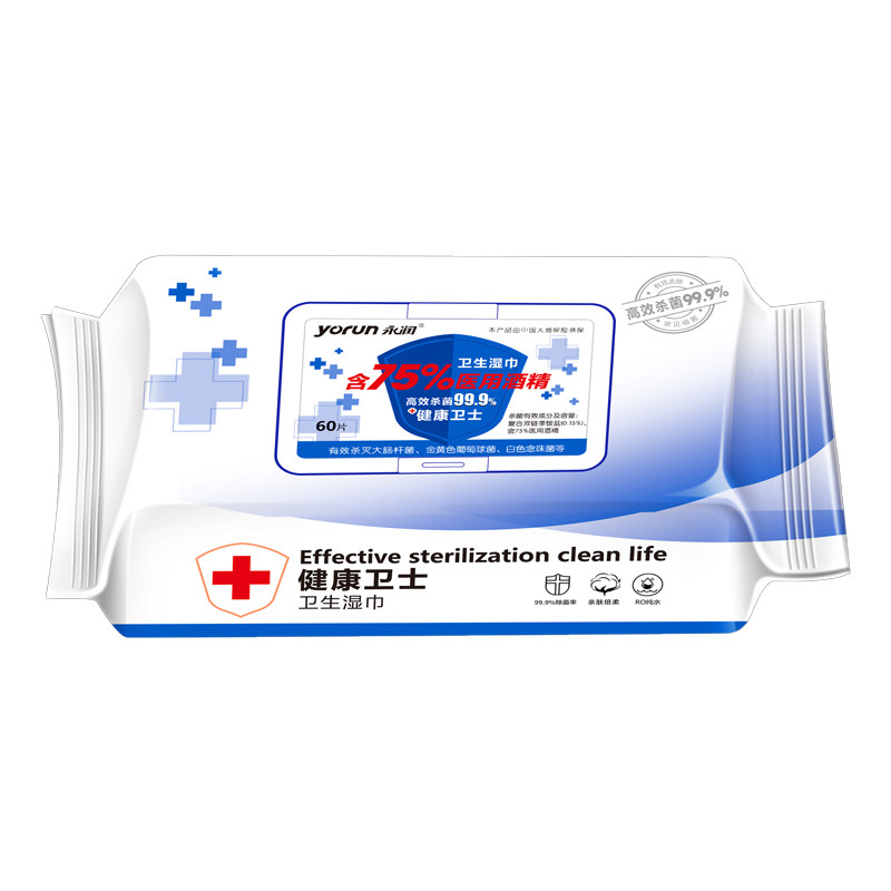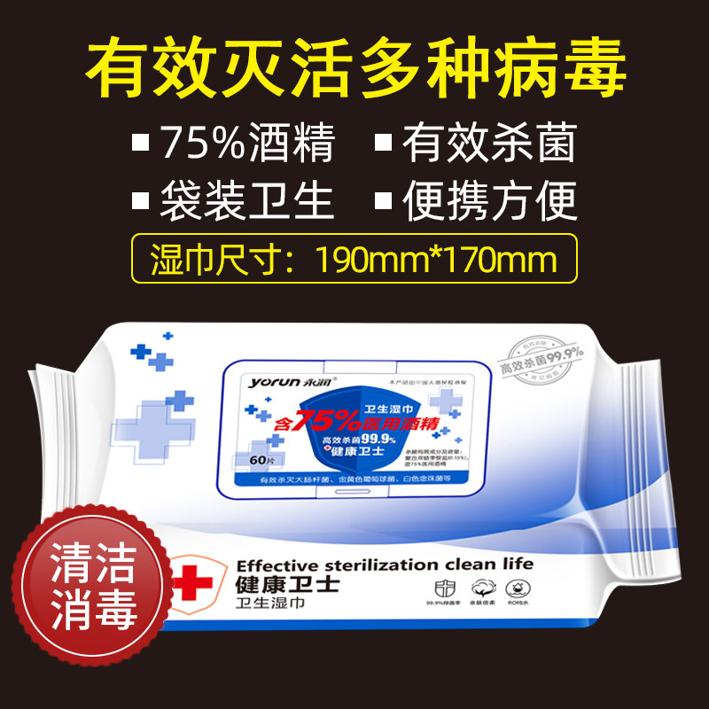 Spot 60 sheet 75 degrees Perpetual Moisturizing Alcohol Wet Towel Germicidal Packaging Skin Portable Children With Separate Hygiene