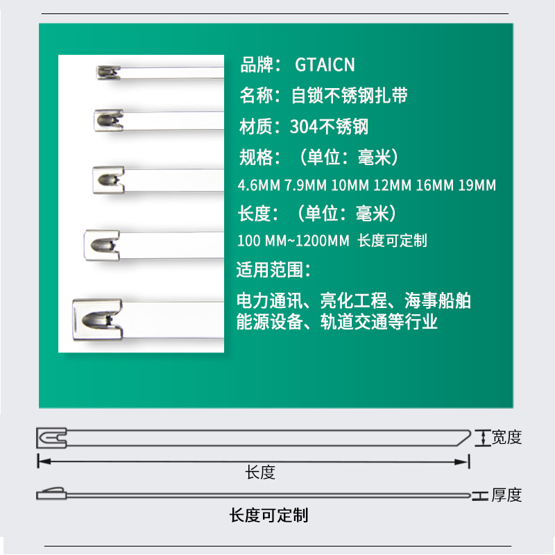 304 stainless steel cable tie 4.6MM metal cable tie room outdoor Zhejiang Gutai factory direct sales high temperature resistant corrosion