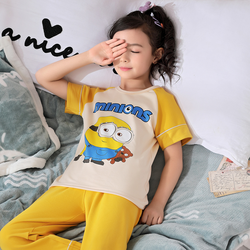 Girls' pajamas spring and autumn pure cotton summer short-sleeved cartoon baby children's children's home clothes mother and daughter sets