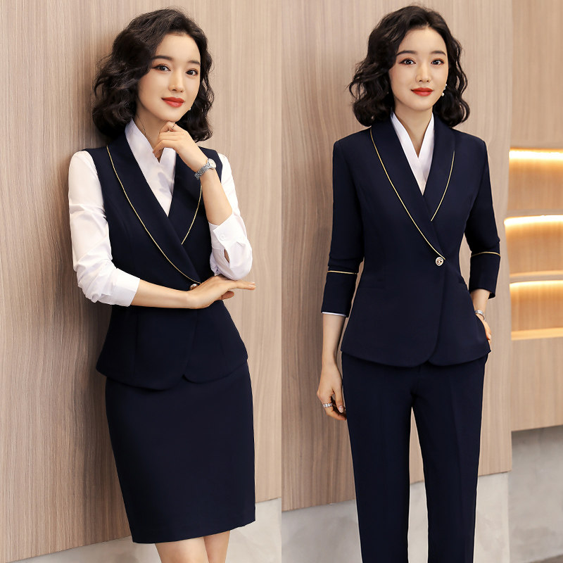 Professional suit women's fashion temperament spring and summer suit jacket women's formal vest dress Hotel front desk work clothes women