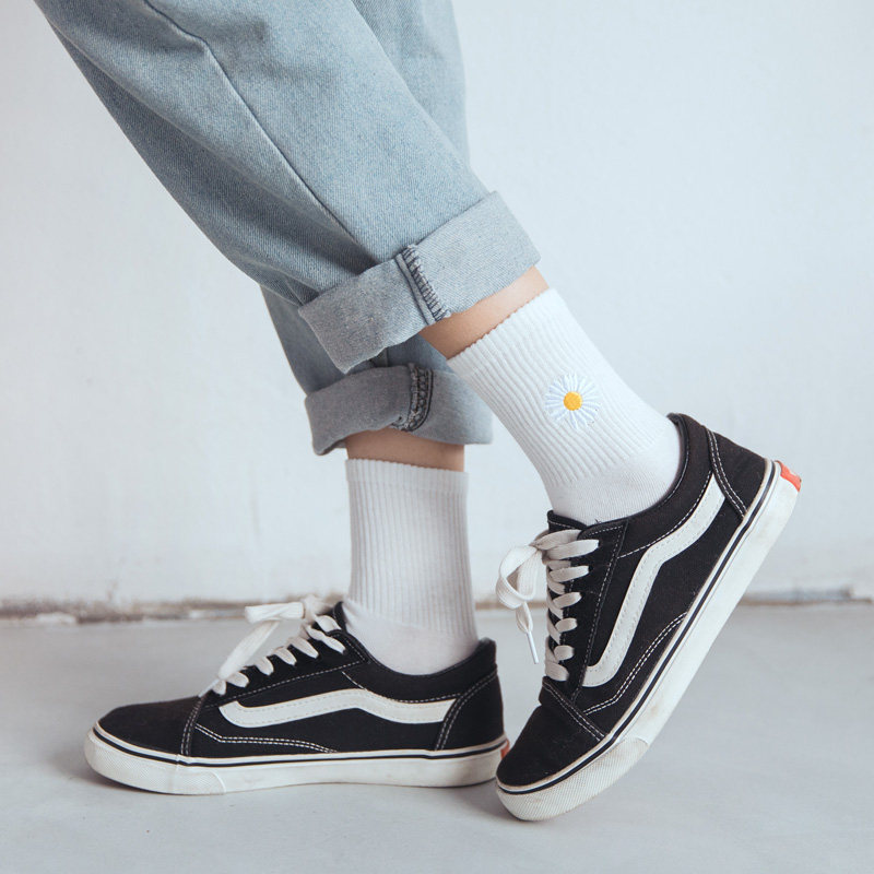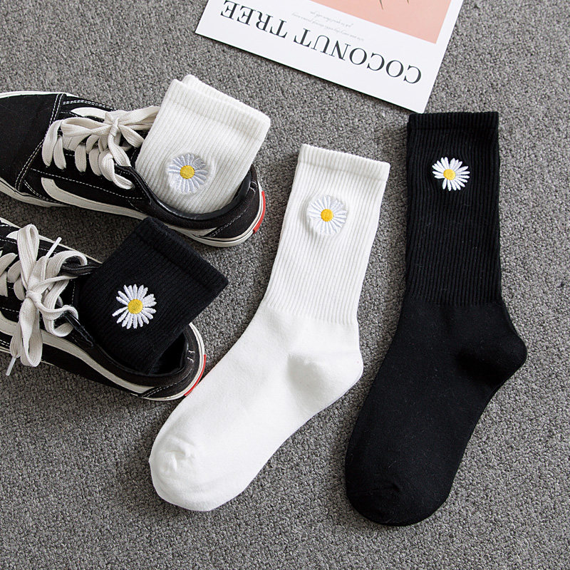 Socks male and female middle cylinder socks pure cotton bottom black and white long socks Summer thin chicks with high help women Sox pins-Taobao