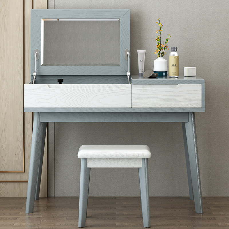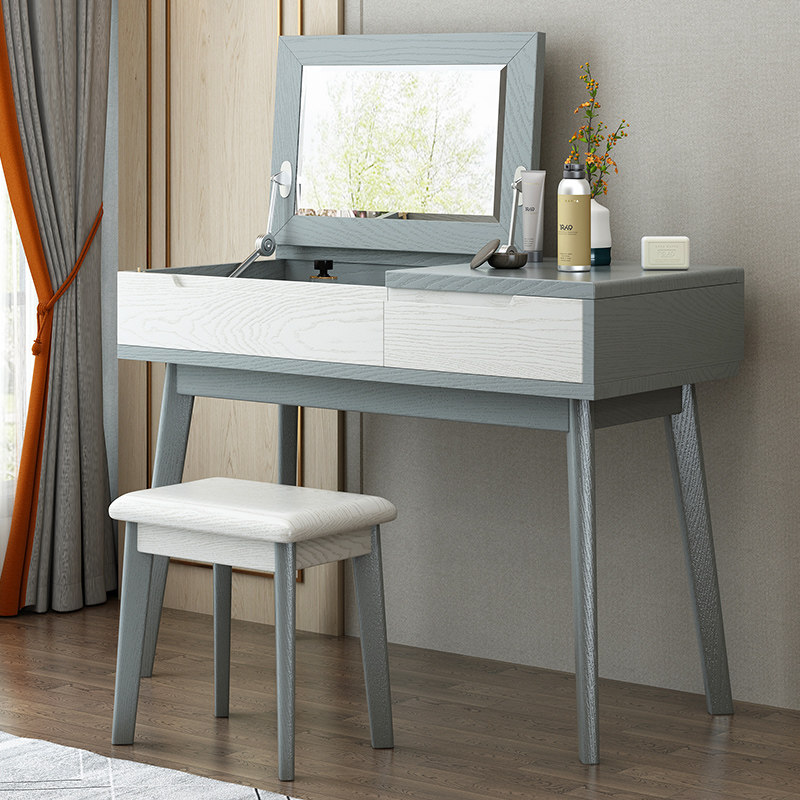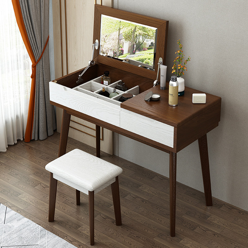 Solid wood dressing table Chinese storage dressing table Modern simple Nordic light luxury makeup table makeup stool Multi-function storage