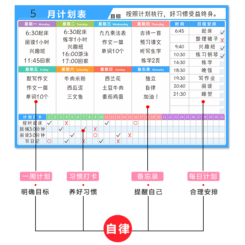 Monthly Schedule Goals Planning Schedule Schedule Vacations Daily Weekly Learning Punch Clock Self-Discipline Table Wall Stickers