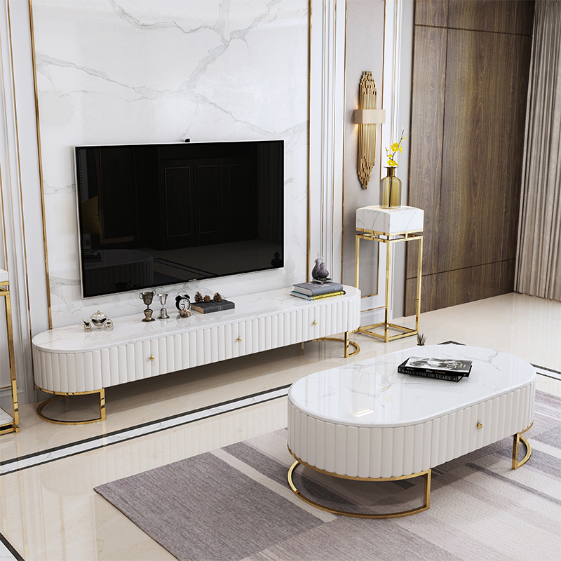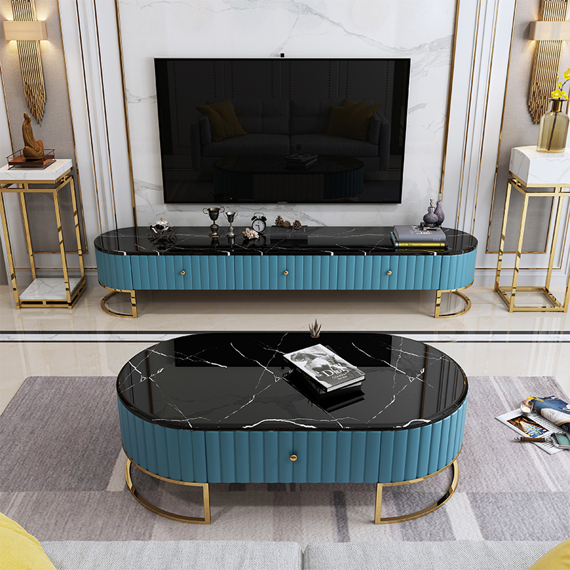 Light luxury post-modern stainless steel marble tea table combination simple household living room Nordic tea table small family furniture