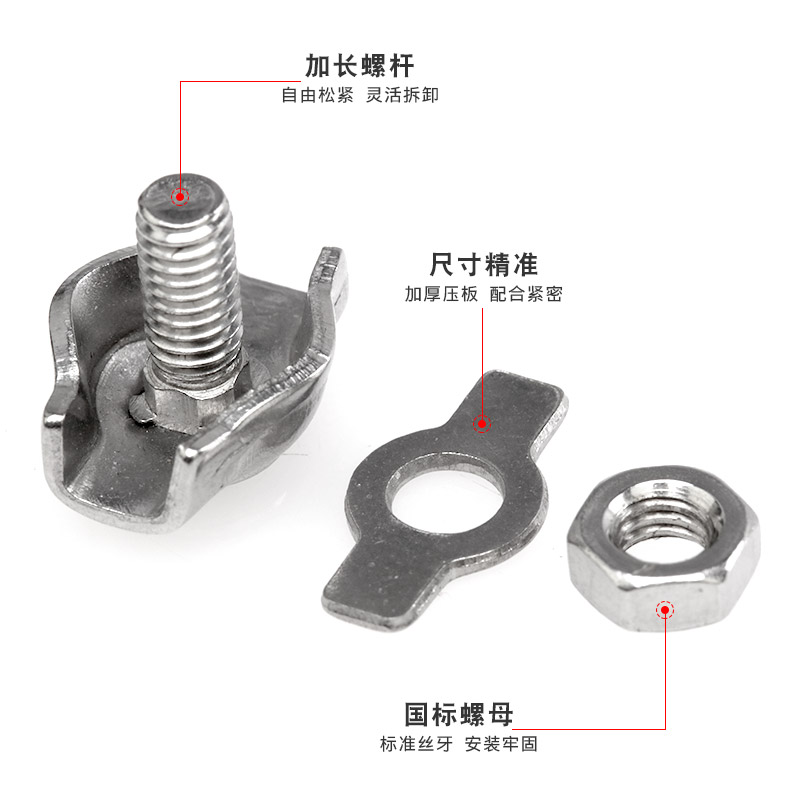 304 stainless steel chuck Chuck double clamp fixed joint Brake line chuck Wire rope clip M2-M10