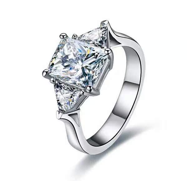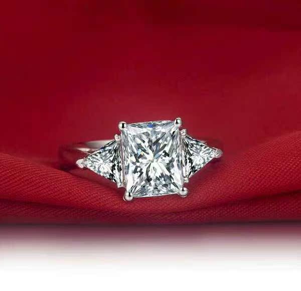 PT950 Platinum Square Blazing Mosanstone Extra-large Luxury 3 Carat with three-drill square ring wedding ring female