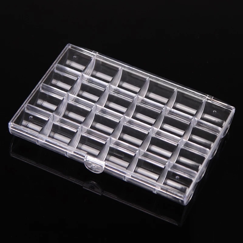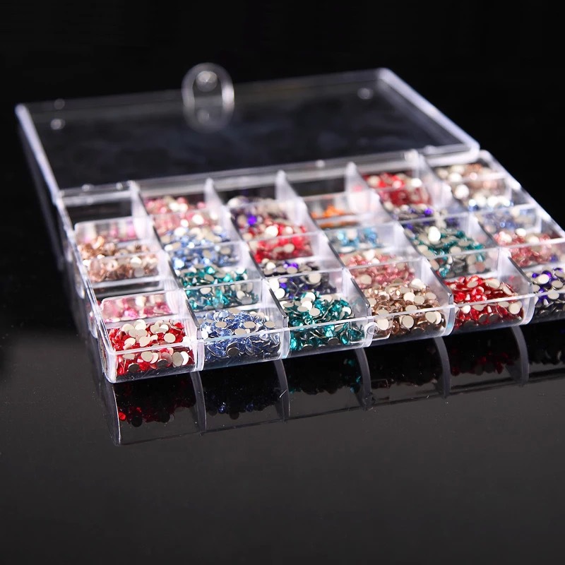 Nail Art Diamond Box Nail Art Tool Alloy Drill Storage Box Nail Rhinestone Jewelry Box 24 Grid Plastic Transparent Jewelry Box