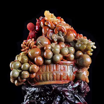 Natural Shoushan stone ornaments Lychee Lizhi strange stone living room ornaments Lucky evil Furong stone carving stone carving