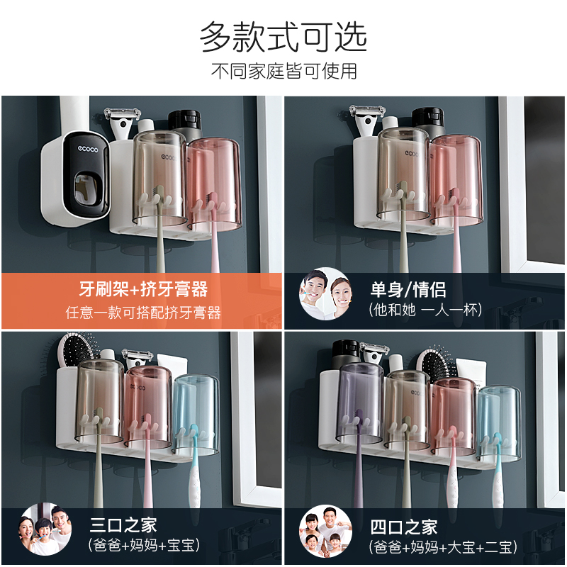 Double-cup toothbrush holder Double-cup toothbrush holder + squeeze toothpaste (off-white) Double-cup toothbrush holder + squeeze toothpaste (black and white) Three-cup toothbrush holder Three-cup toothbrush holder + squeeze toothpaste (off-white) Three-cup toothbrush holder + squeeze toothpaste (black and white) Four-cup toothbrush holder Four-cup toothbrush holder + squeeze toothpaste (off-white) Four-cup toothbrush holder + squeeze toothpaste (black and white)