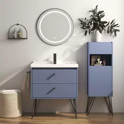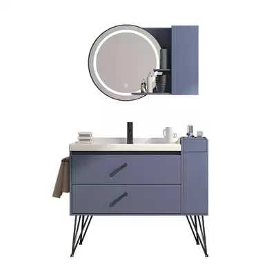 Nordic smart bathroom cabinet floor-standing round mirror wash basin cabinet combination cosmetic room washbasin washbasin Bath Cabinet