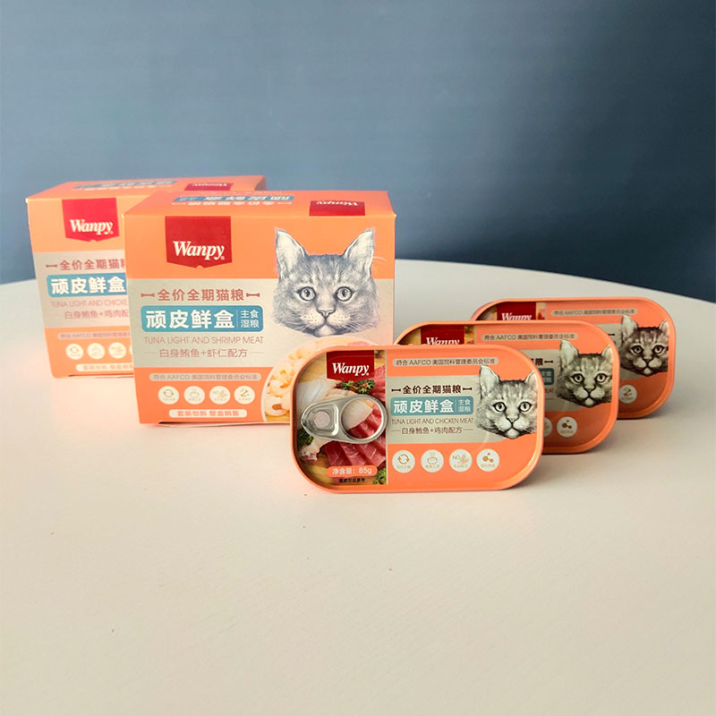 6 Cans Wanpy Naughty Box Cat Canned Cat Snacks Staple Food Jars Naughty Cat Can Play Leather Cat Food Wet Grain