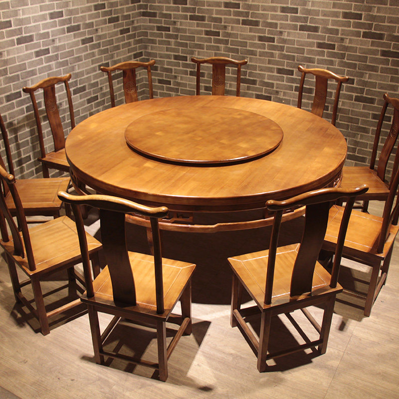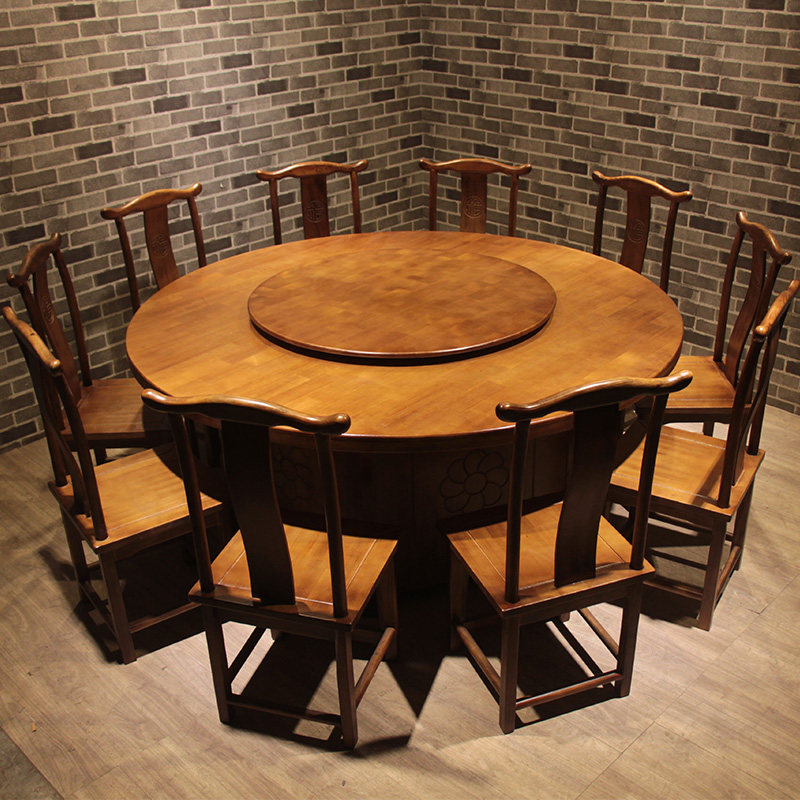 Carbonated Solid Wood New Chinese Style Dining Room Hotel Leisure Farm Hotel Size Round Dining Table And Chairs Combined Electric Turntable Home