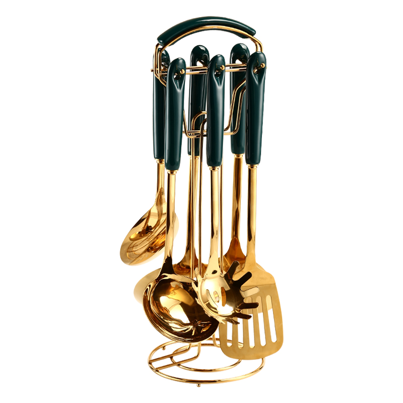 Light luxury kitchen utensils 6 piece set + storage rack 1