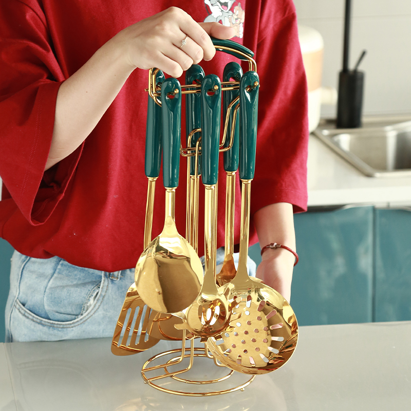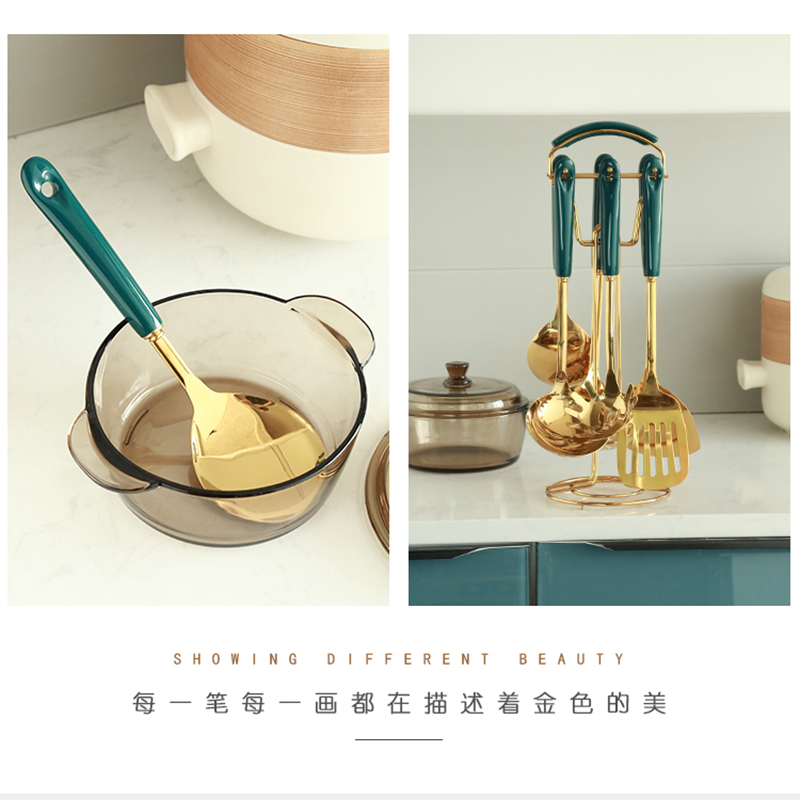 Light luxury kitchen utensils 6 set + storage rack 1 light luxury kitchen utensils 6 pieces set + storage rack 1 (light luxury white) emerald frying spatula emerald spatula emerald soup spoon emerald noodle scoop emerald colander emerald scraping juice spoon light luxury white spatula light luxury white spatula light luxury white soup spoon light luxury white face scoop light luxury white colander light luxury white scraping juice spoon