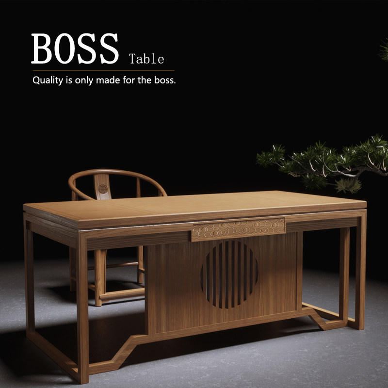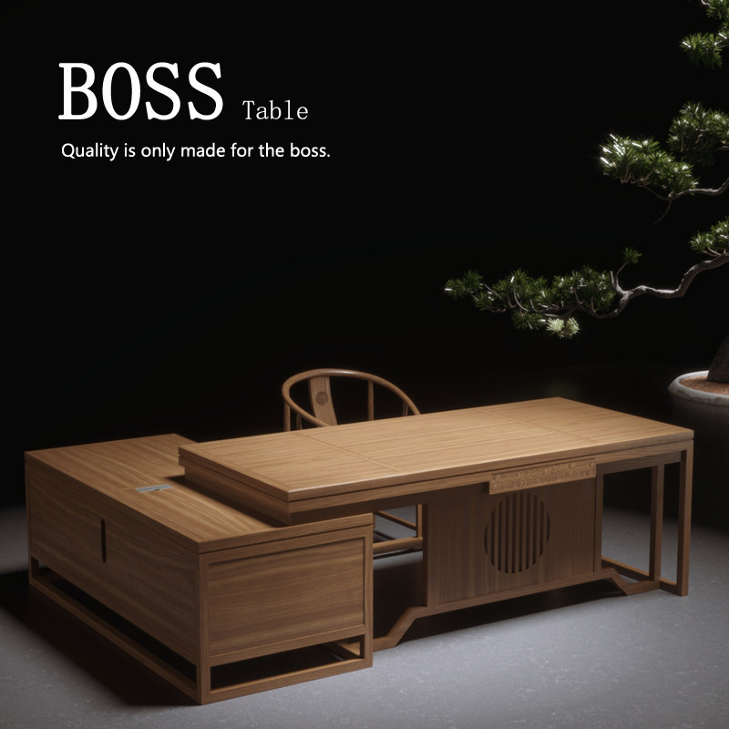 New Chinese style solid wood executive desk simple boss desk president office desk black walnut high-end office home set