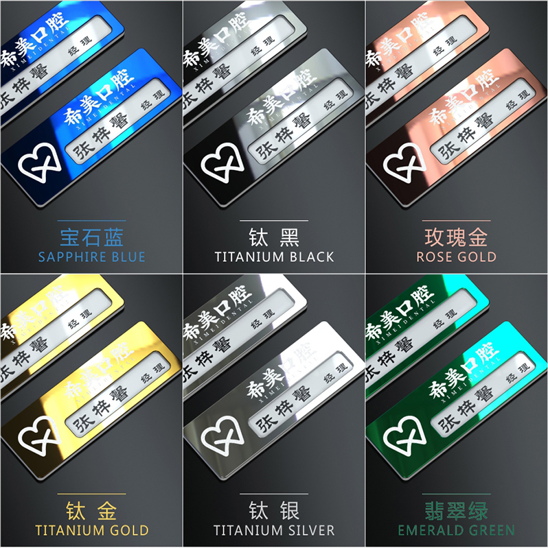 Stainless steel badge custom pin type magnet metal worker number plate employee work card suction stone badge customized strong