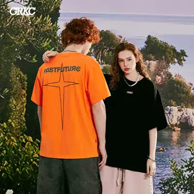 GRKC basic Doji star logo short-sleeved tide brand hip-hop street printing loose men's and women's T-shirts Summer tide tops