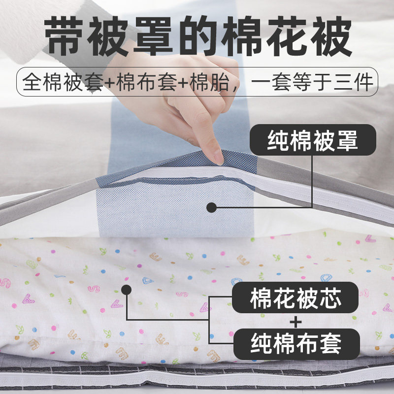 Cotton with quilt cover quilted by single person Dormitory Student Quilt Plus Quilt Cover Removable Unwashed Full Cotton Quilt Core by Spring and Autumn