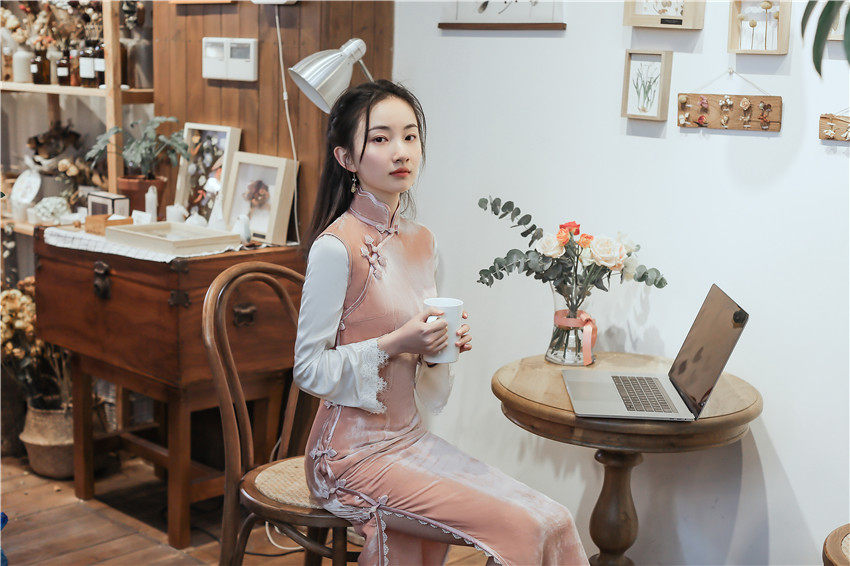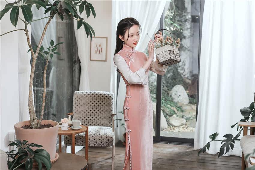 Spring, summer and autumn Chinese Republic of China style retro shoulder-length seven-point sleeve loose one-piece ancient style plate buckle cheongsam