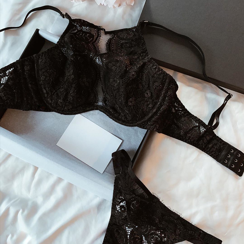 Sexy Thin Underwear Woman Autumn Hanging Neck Eyelash Lace Hollowed-out Seductive Steel Ring On a Bra Suit Lady