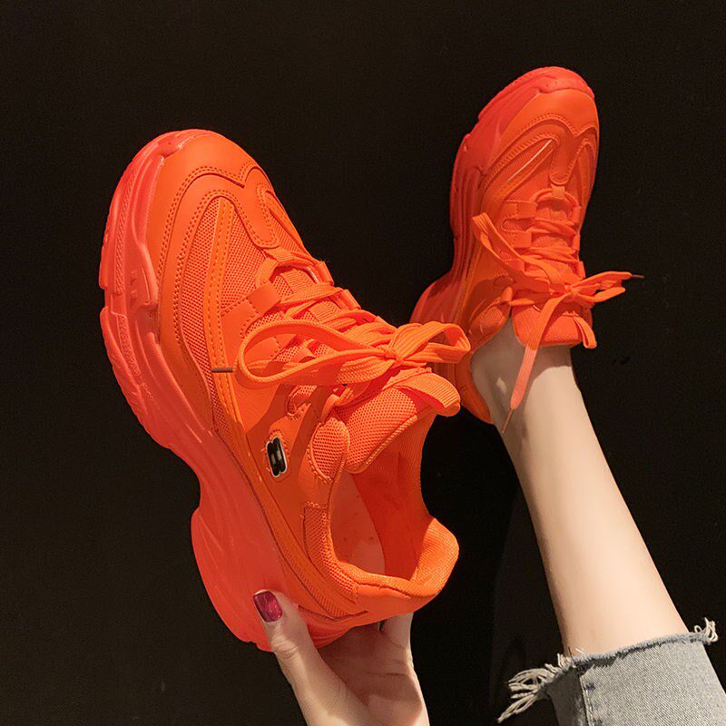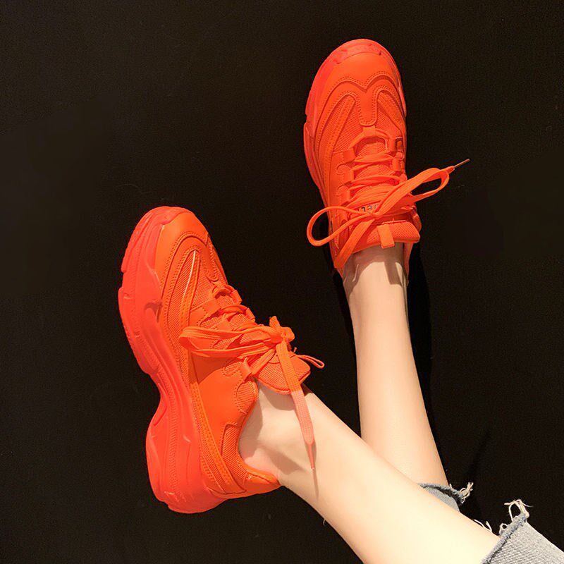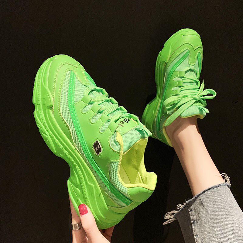 Green thick-soled women's shoes fluorescent green shoes women's trendy 2020 summer new net celebrity mesh breathable thick-soled sneakers