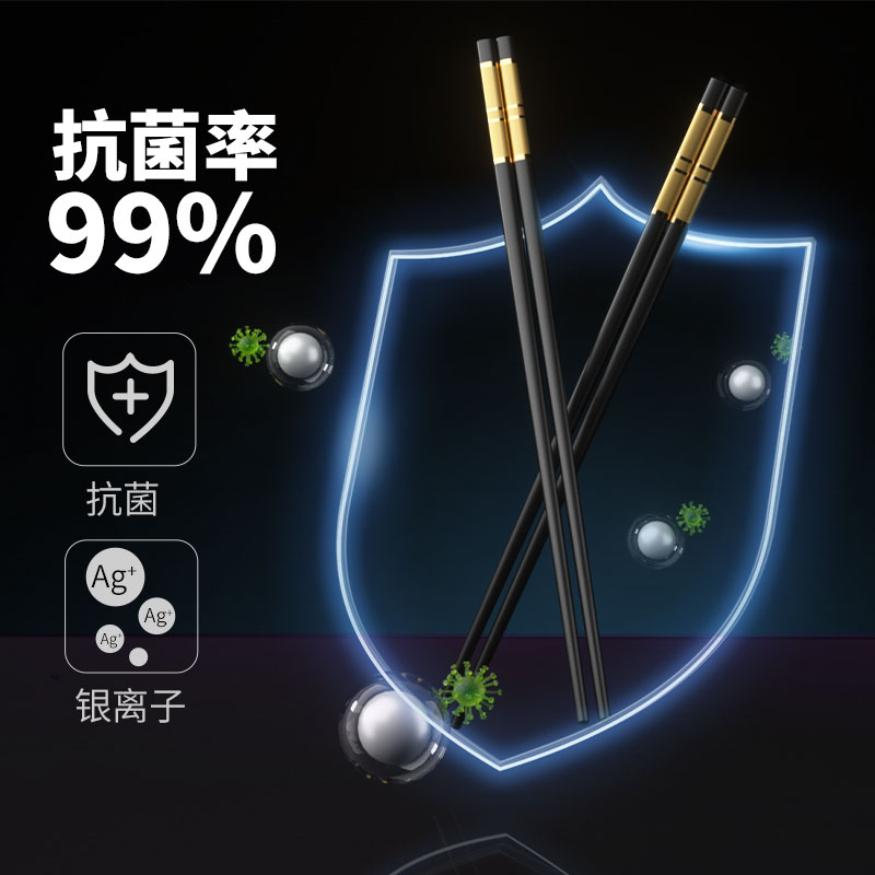 Antibacterial chopsticks home high-end high-end alloy high temperature resistance high value fast child light luxury wind anti-slip