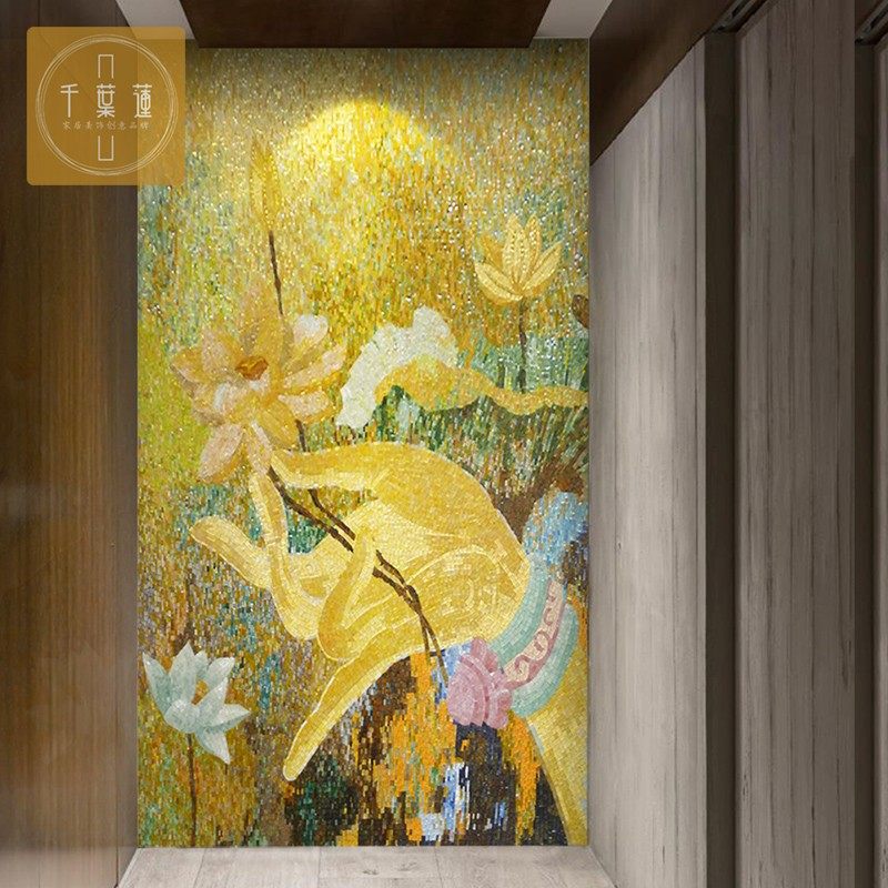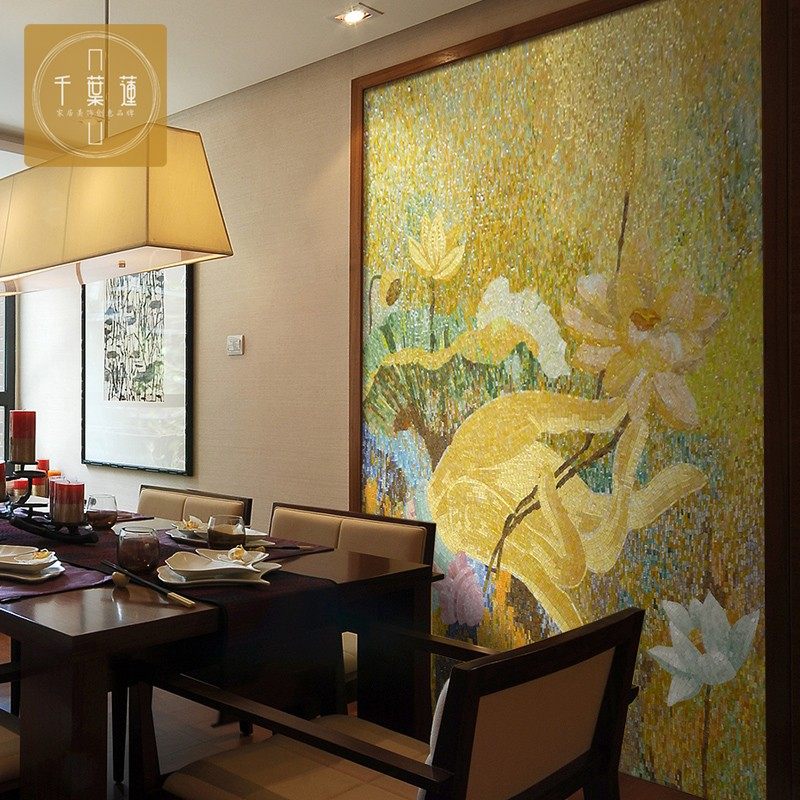 New Chinese Building Materials Glass Mosaic Background Wall Tiles Parquet Jigsaw Puzzle Cut TV Wall Living Room Genguan Dining Room