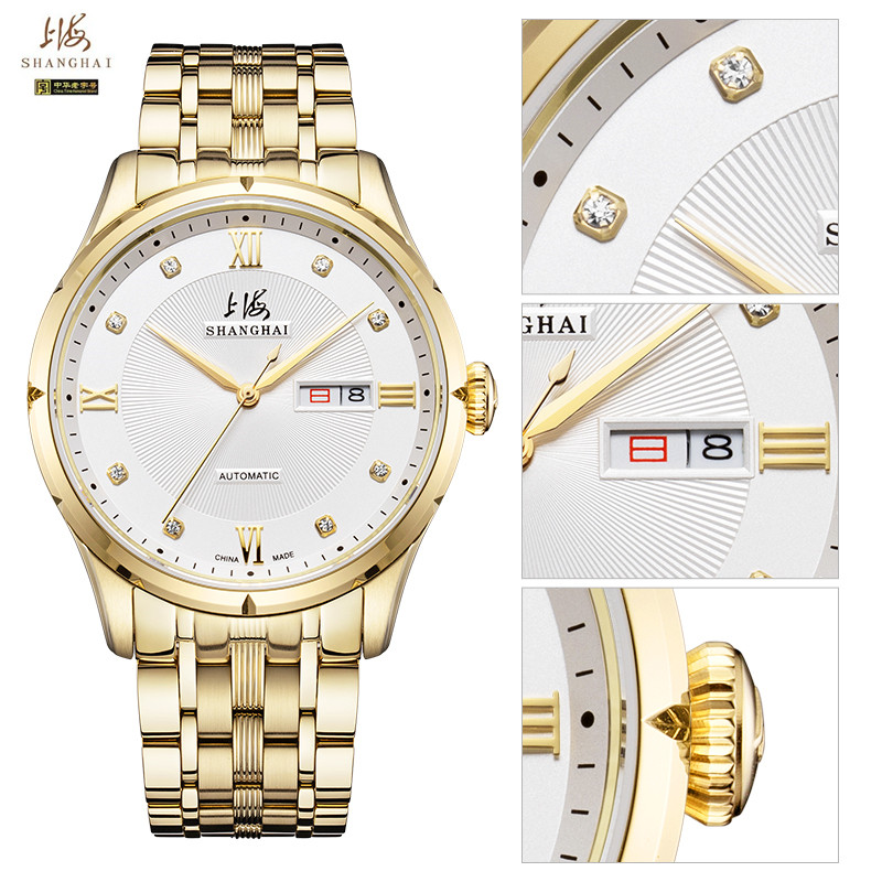 Shanghai Watch Men and Women Fully Automatic Mechanical Watch Diamond Casual Calendar Fashion Trend 3012