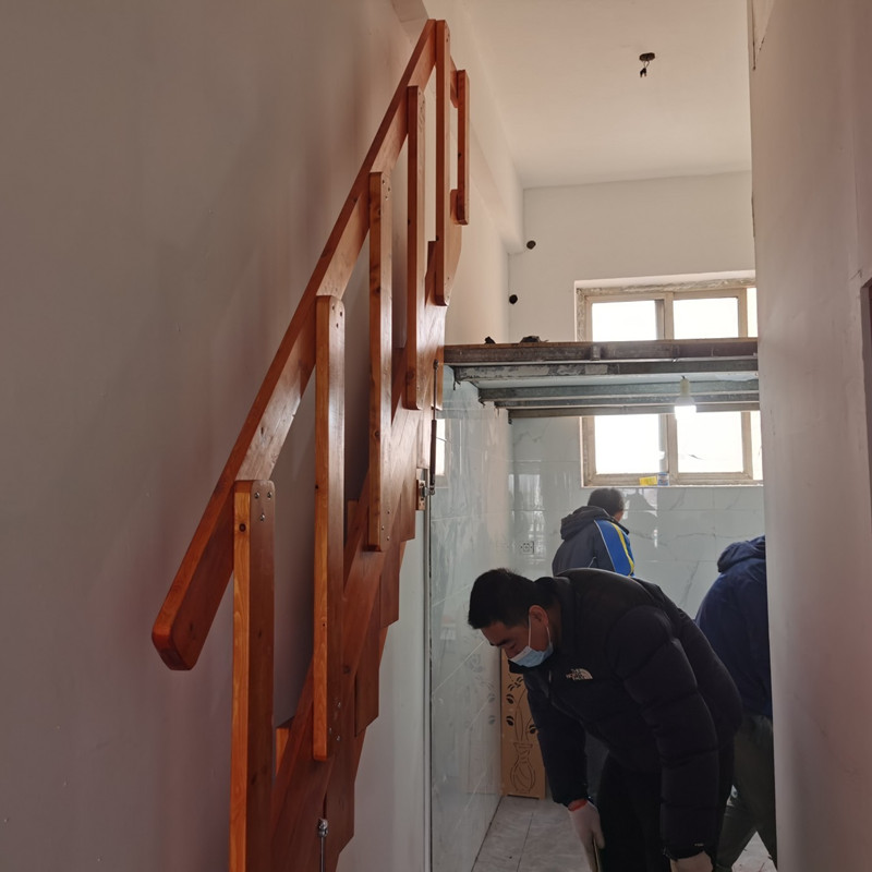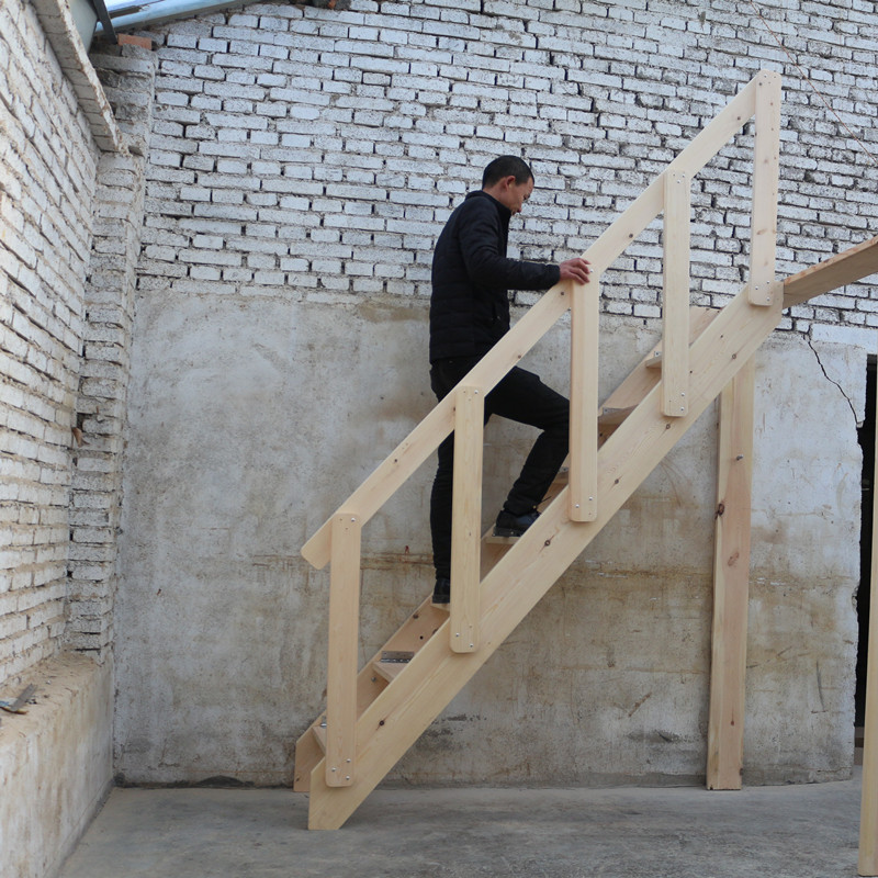 Solid wood straight sheet high net red household with folding ladder duplex wall fashion flip loft stretch loft stairs