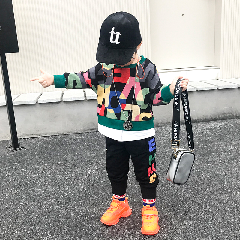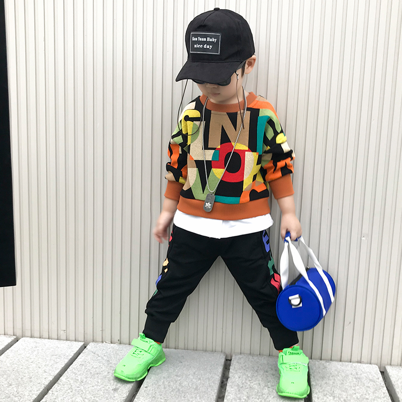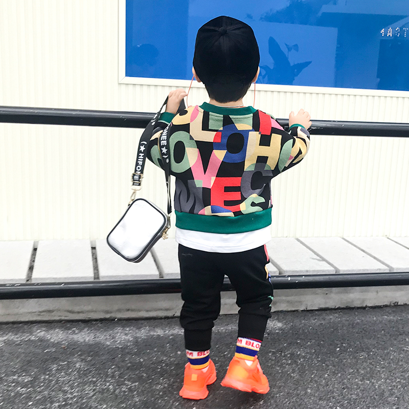 Boys autumn suit 2022 new children's Korean version of the Western style sweater baby autumn two-piece cotton clothes trend