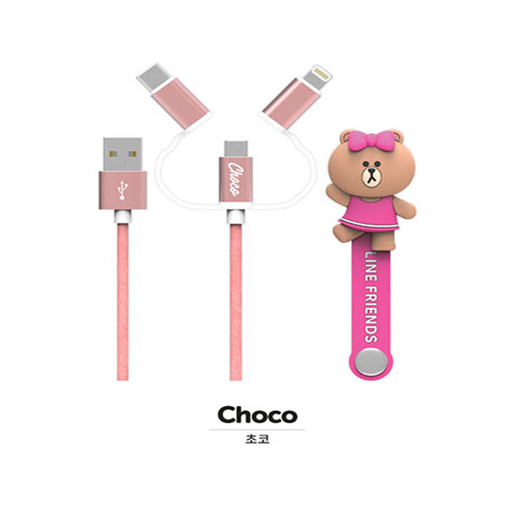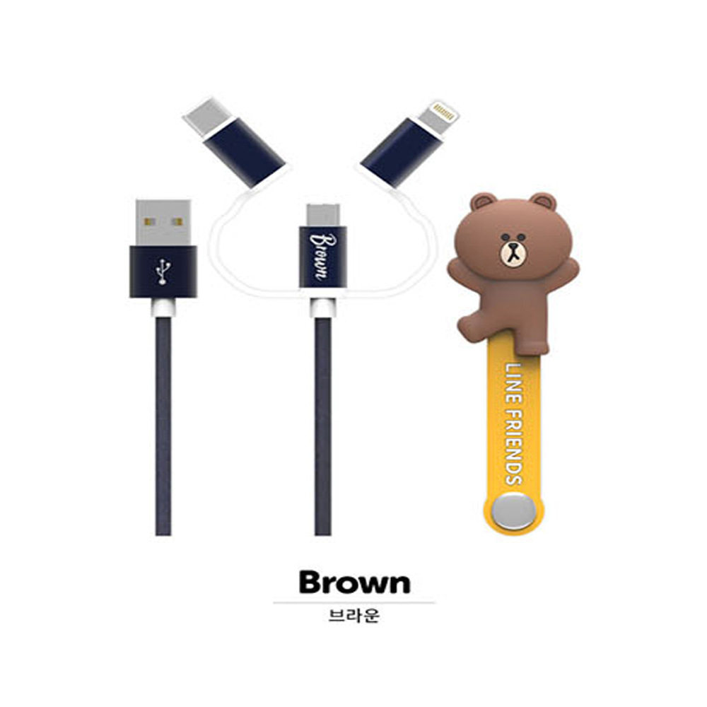 South Korea LINE FRIENDS three-in-one drag triple phone charging line Fast charging data line suitable for Apple lengthened