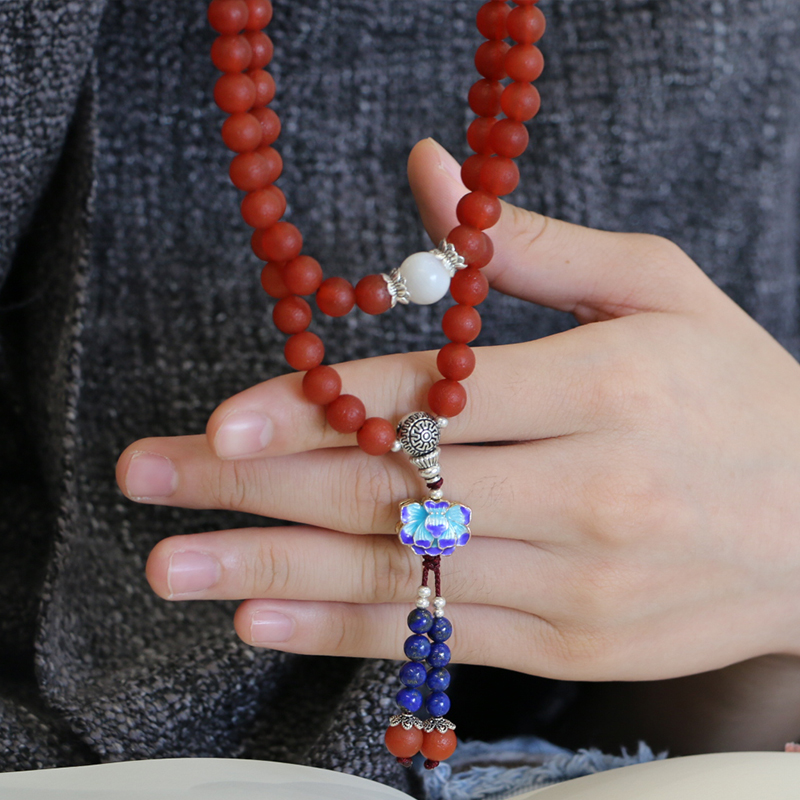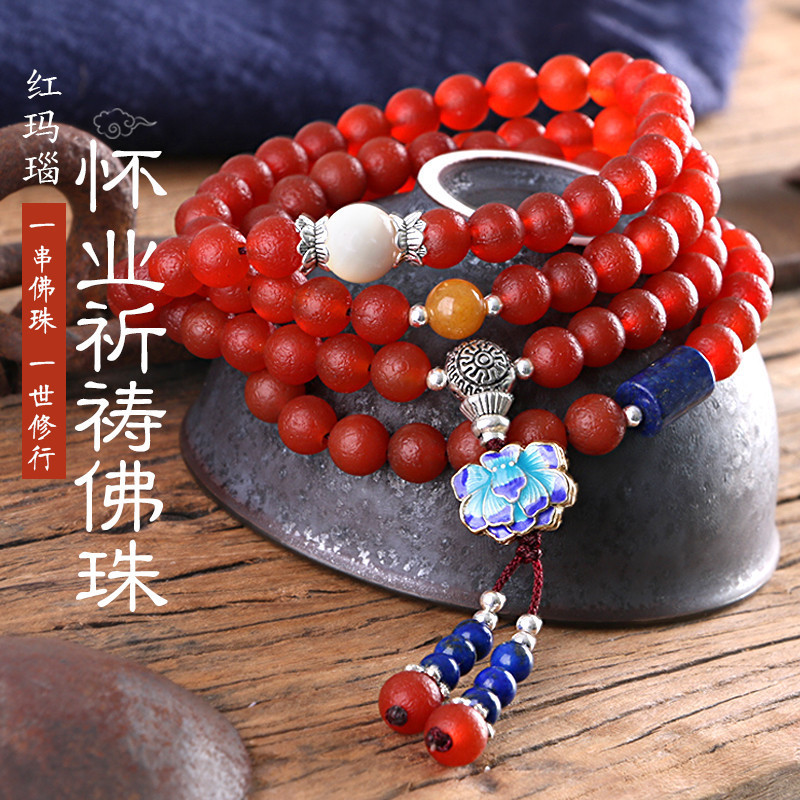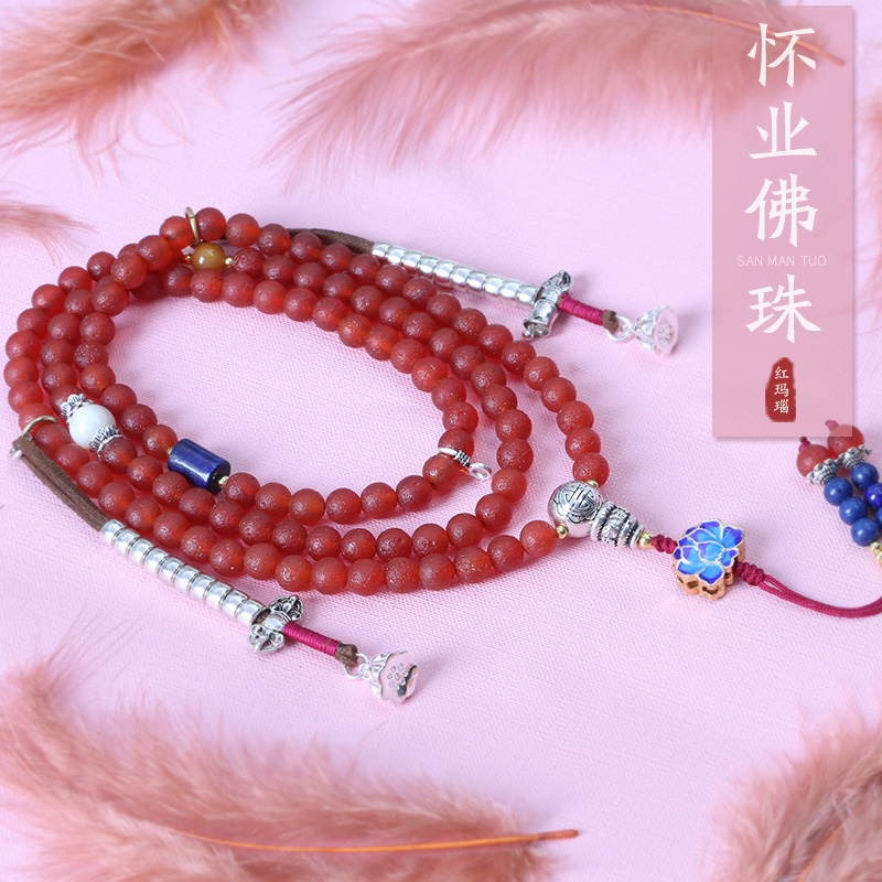 Natural red Manau necklace 108 Buddha pearl Huaiye Jiubon Buddha Candida Pearl red pendant South red handstring