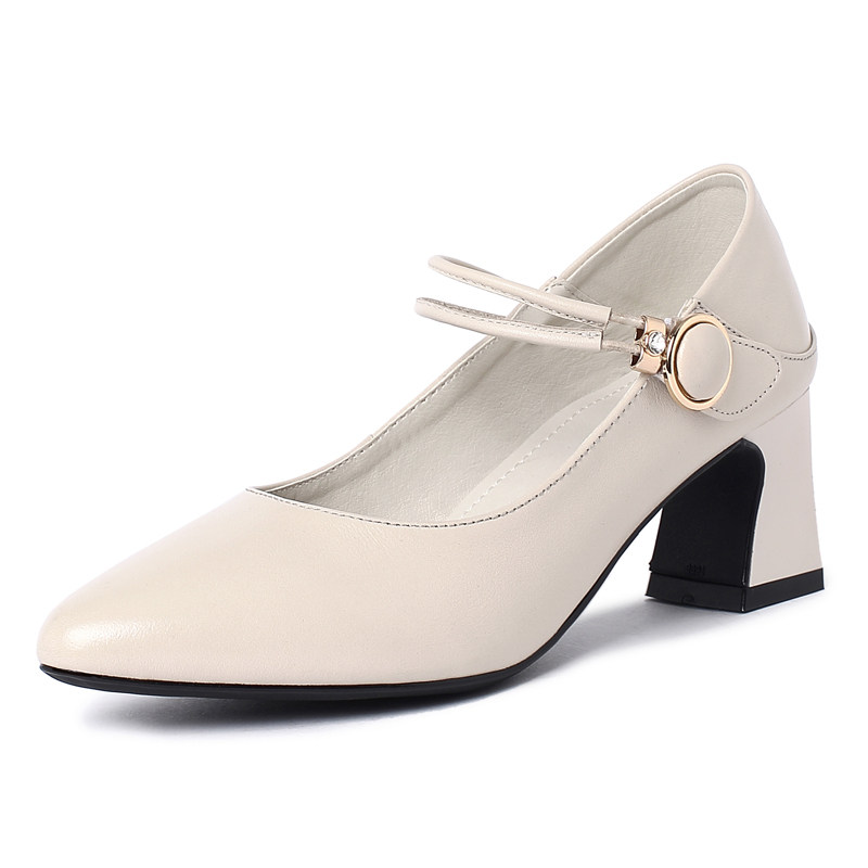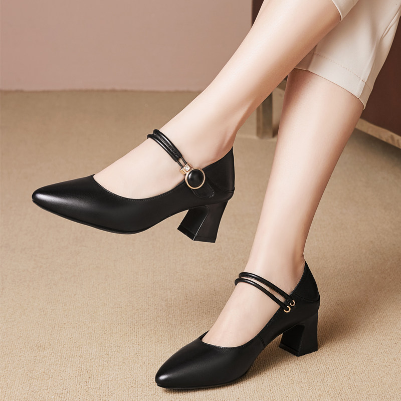 Red in heels Heel Bag Shoes Girl Soft Leather Buttons Women Shoes High Heel 100 Hitch Genuine Leather Soft Bottom Spring 2021 New Leather Shoes