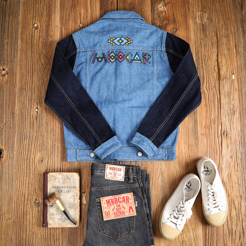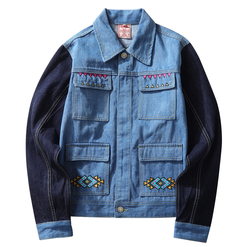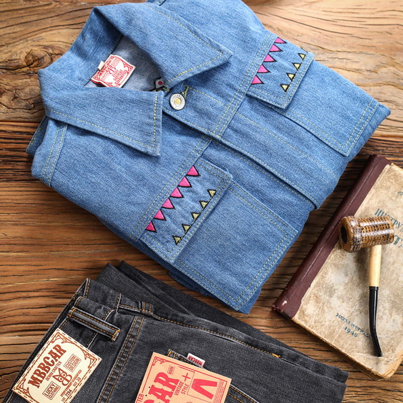 European and American West Coast ethnic style embroidered red ear denim jacket MBBCAR narrow original design wash jacket