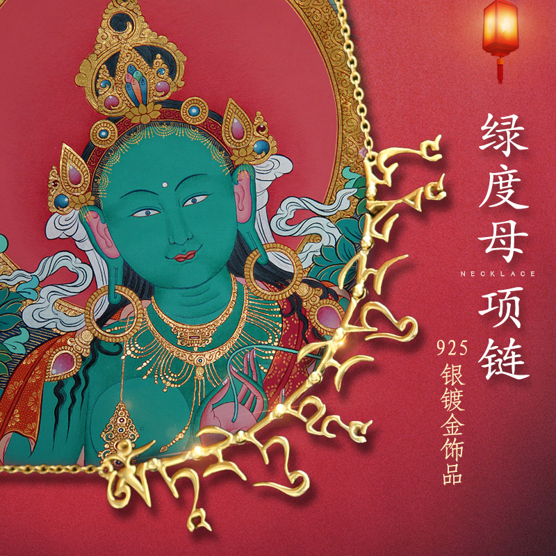 Green Degree Mother's Spell Pendant Necklace Lock Bone Chain Buddha's Heart Spell Seed 925 Silver Girl with Wennecklace Ornament