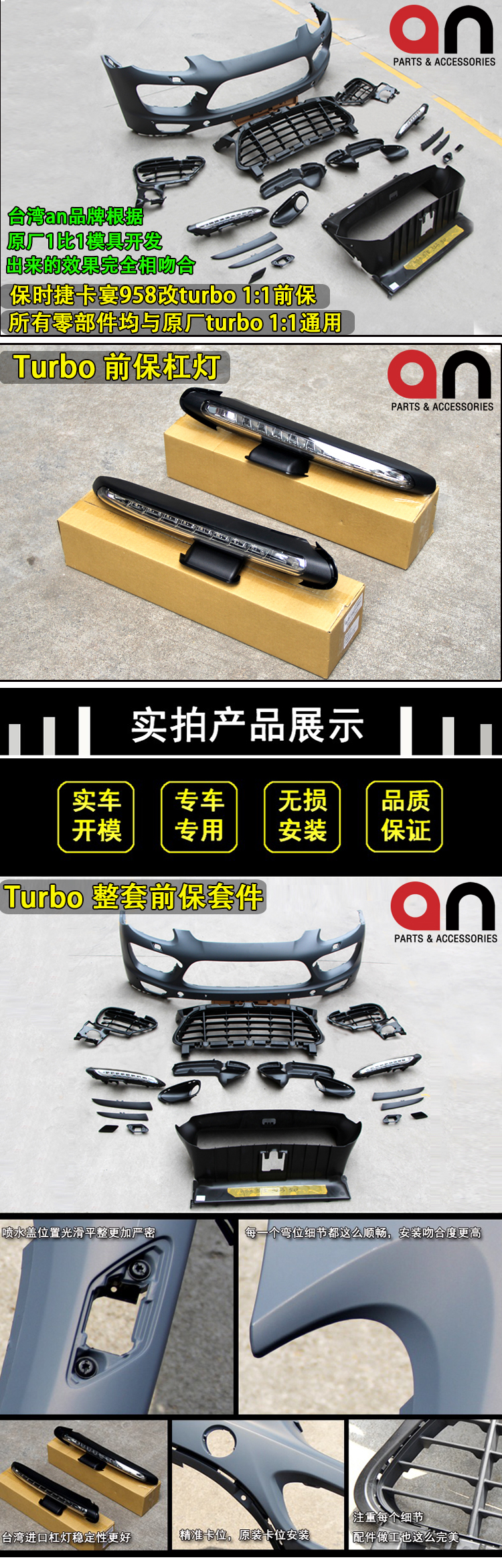 Suitable for Porsche Kaiyan 958 modified TURBO Grand Mouth Large Surround Front Bar Insurant, Taiwan An