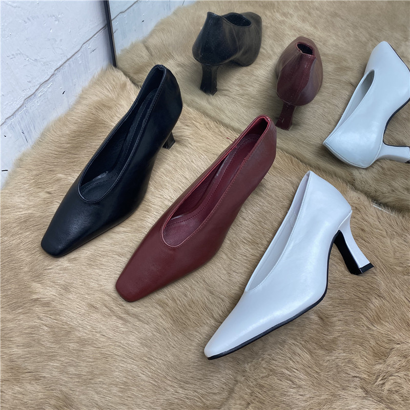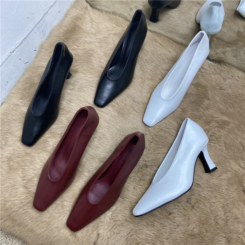 chic korean women's shoes 2022 spring new sexy professional shoes all-match thick heel single shoes fashion square toe high heels