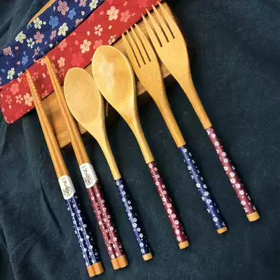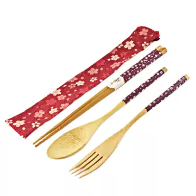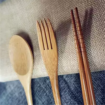 Taiwan Sendman Japanese non-slip bamboo chopsticks spoon set home eating high-end fork tableware three-piece set