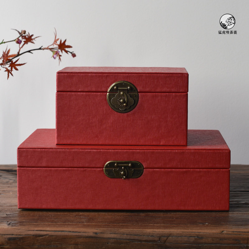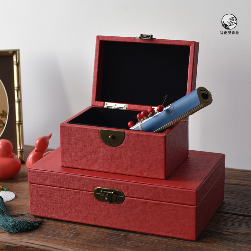 New Chinese-style red leather high-end jewelry box storage box ornaments model room bookcase desktop living room soft decorations