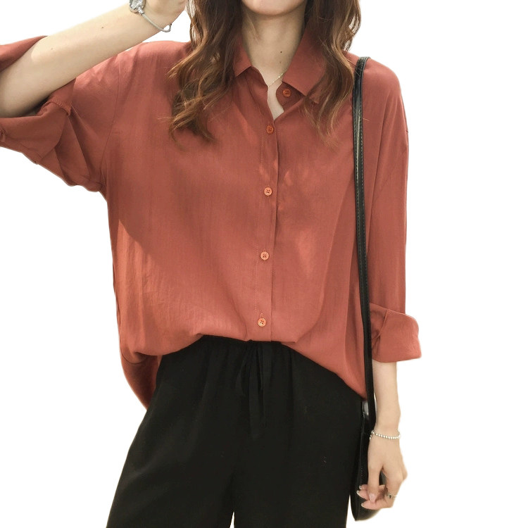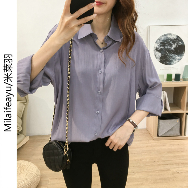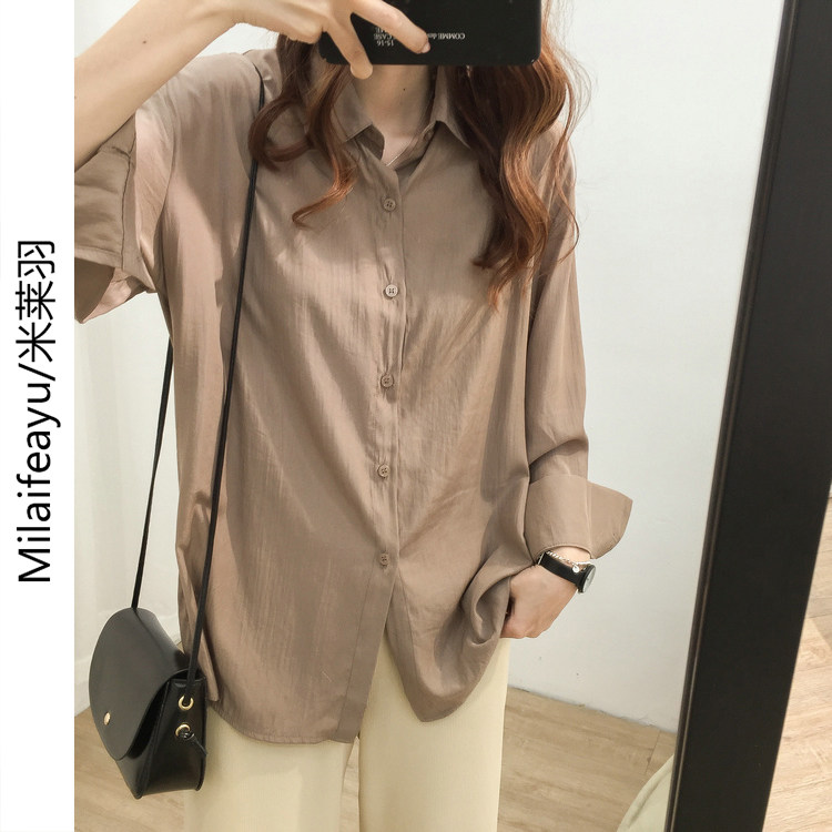 High-end Shirt Woman Thin style Spring and autumn new Korean version Lazy Wind Easy to take up a T-shirt 100 lap blouse Long sleeves shirt
