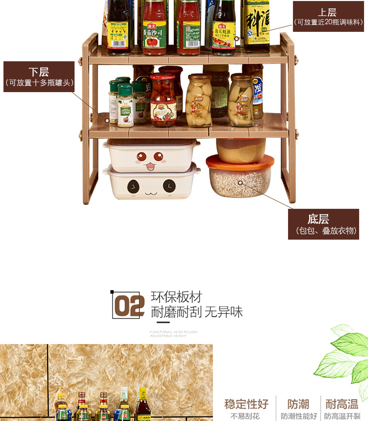 Telescopic sink shelving cabinet floor-to-ceiling pot shelving stainless steel plastic kitchen supplies storage rack