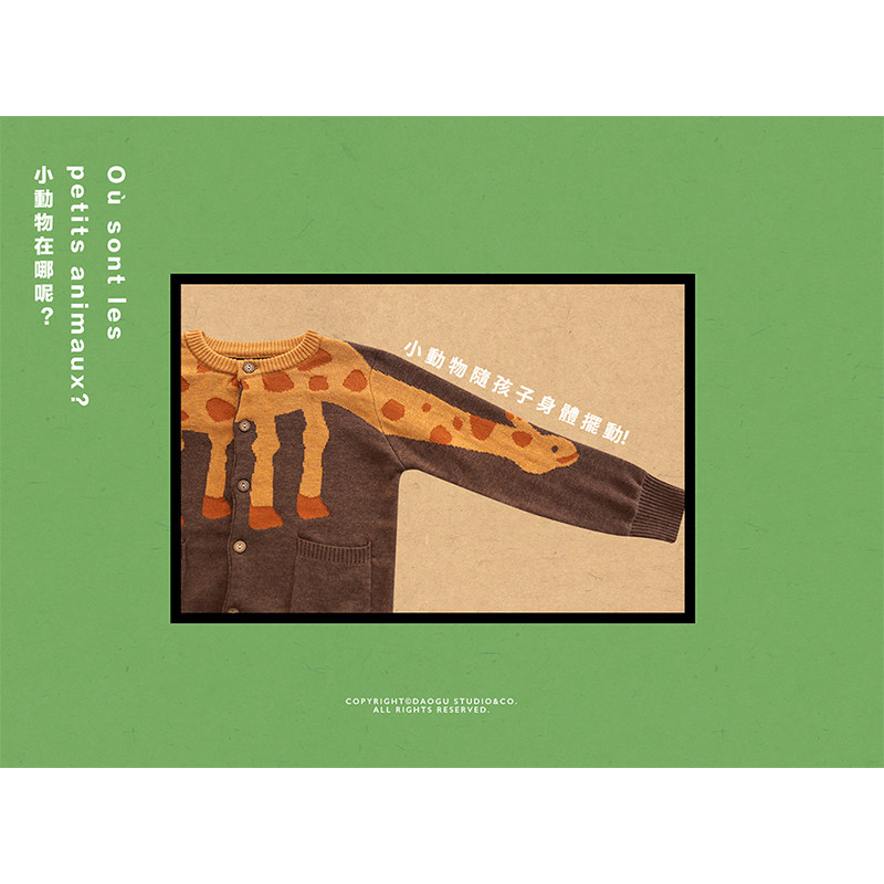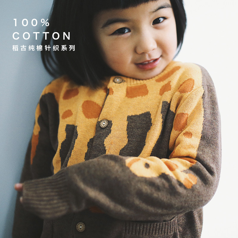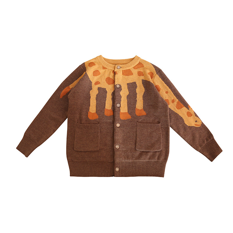 Rice ancient DAOGU cotton knitted dinosaur giraffe animal cardigan coat for boys and girls