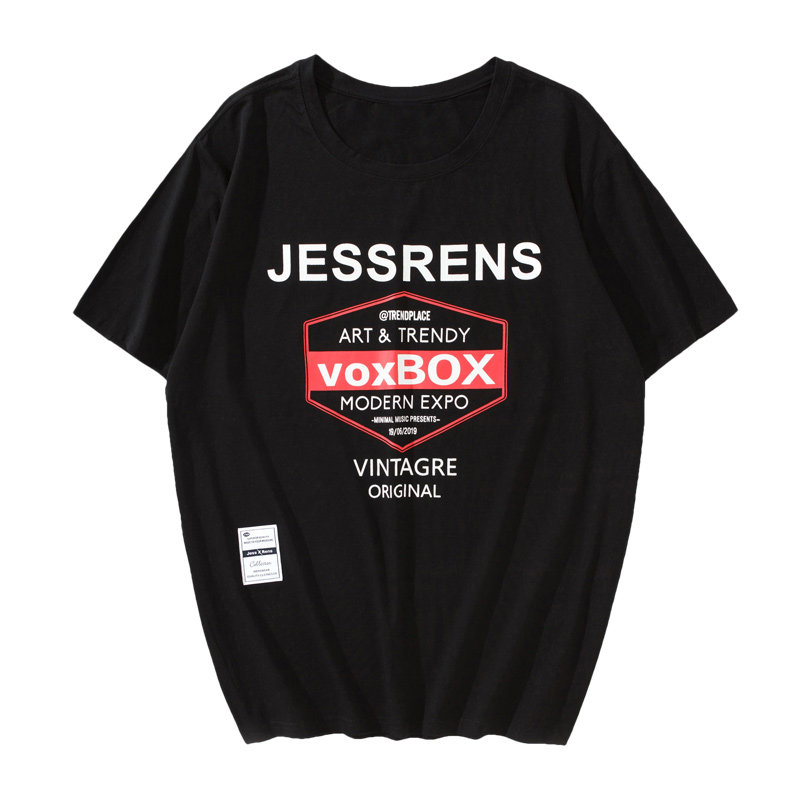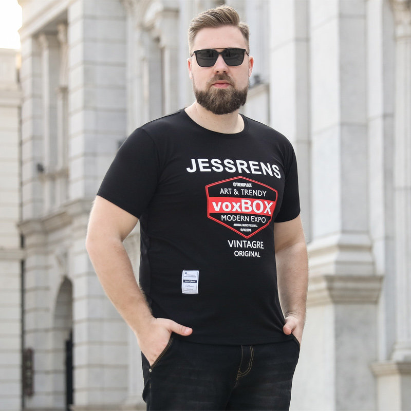Country fat and fat short sleeve T-shirt male loose plus size up half sleeve round collar letter fashion elastic printed sweatshirt