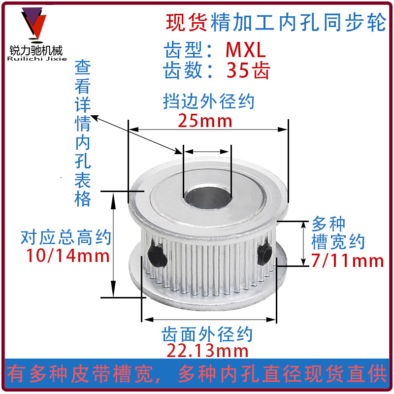 Check in front view details Inner hole Size table Please leave a message with no contact customer service MXL35 teeth (adapted bandwidth 6mm) round inner hole MXL35 teeth (adapted bandwidth 10mm