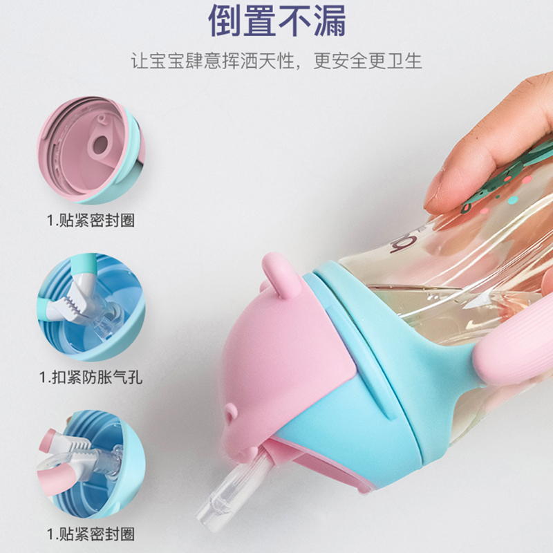 bun Beiyuneng baby learning cup 6 months baby drinking cup Anti-choking and leak-proof handle PPSU children's duckbill cup