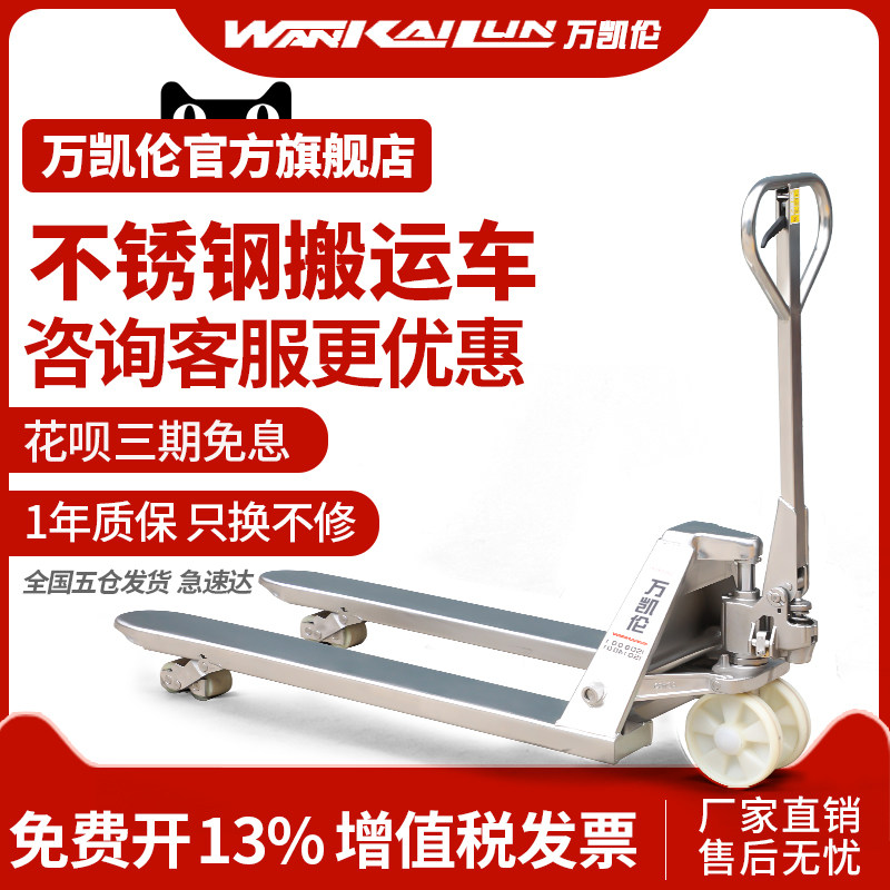 ten thousand Karen stainless steel heaps high machine manual hydraulic carrying car ground cattle tray car 2 ton pile high machine oil pressure car hydraulic car