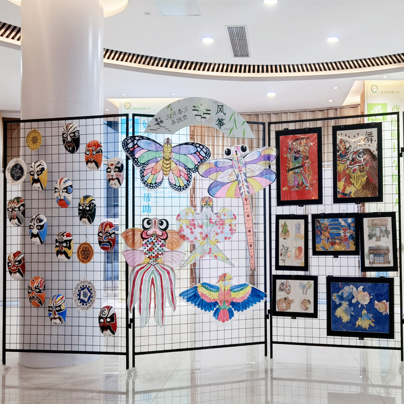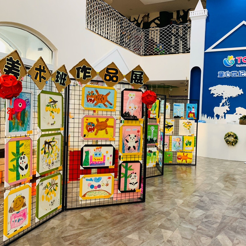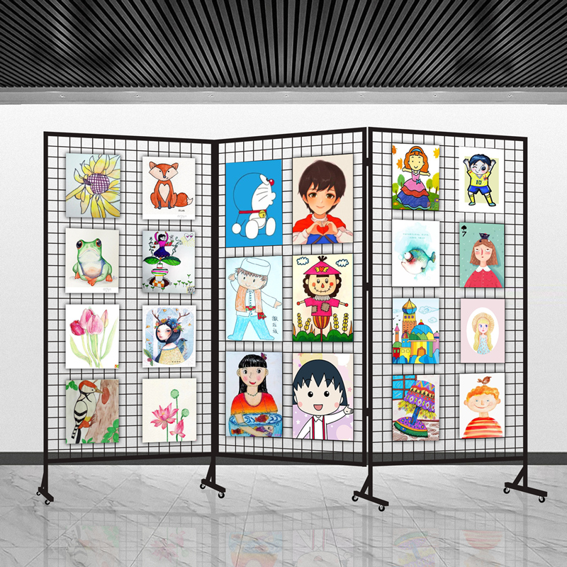 Vertical iron folding kindergarten works mesh display shelves outdoor painting exhibition beauty park mobile shelf shelves