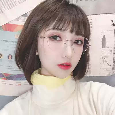 Little red book Diamond trimming rimless myopia glasses female big frame can be equipped with degree plain glasses frame female face thin